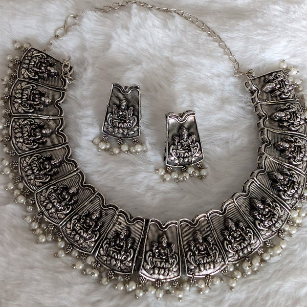 This Temple Silver necklace and earrings set beautifully captures traditional craftsmanship, offering an elegant accessory for special occasions. Crafted with intricate detailing, it enhances your look with a timeless charm while providing a comfortable fit. Perfect for adding a touch of cultural elegance to your ensemble, this set supports your style with both grace and authenticity.
